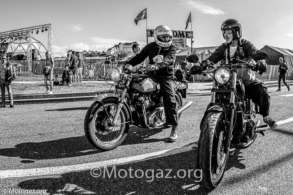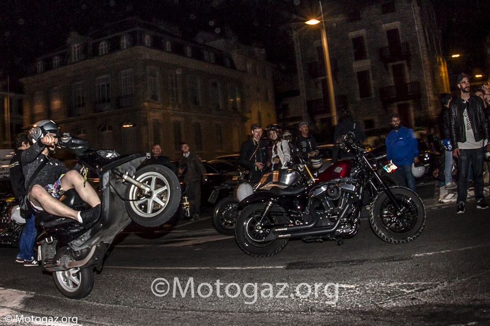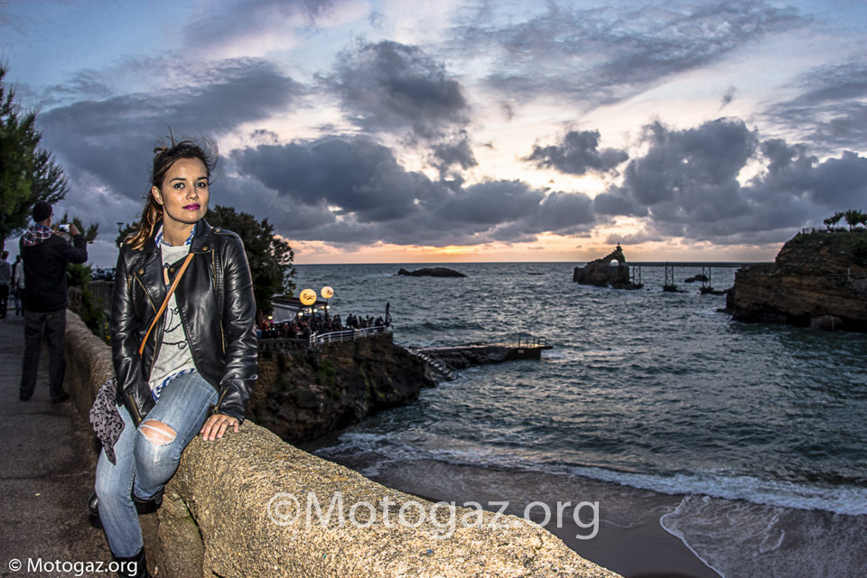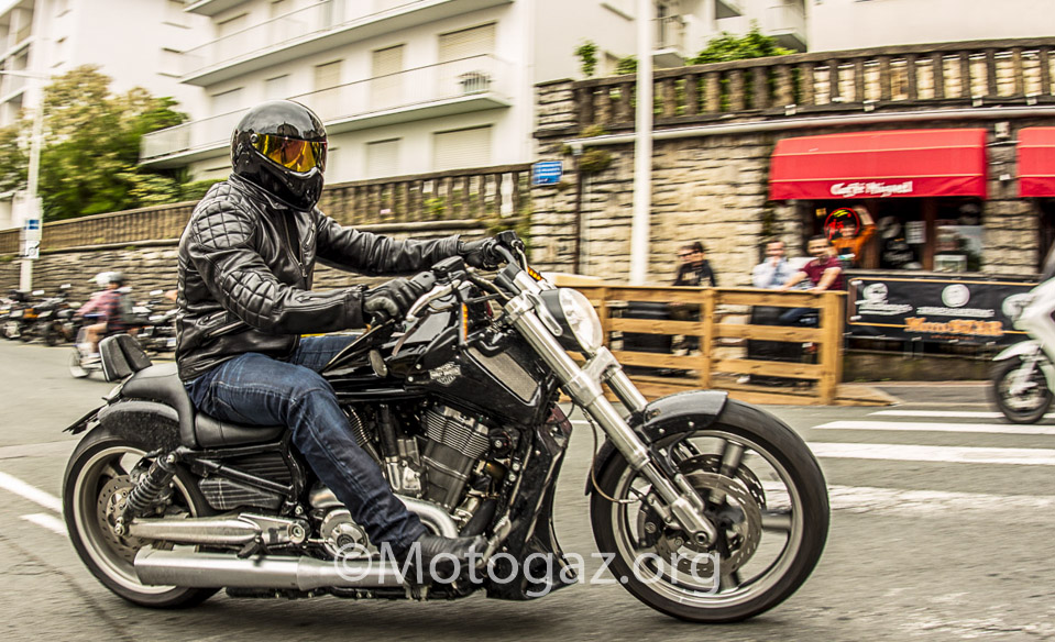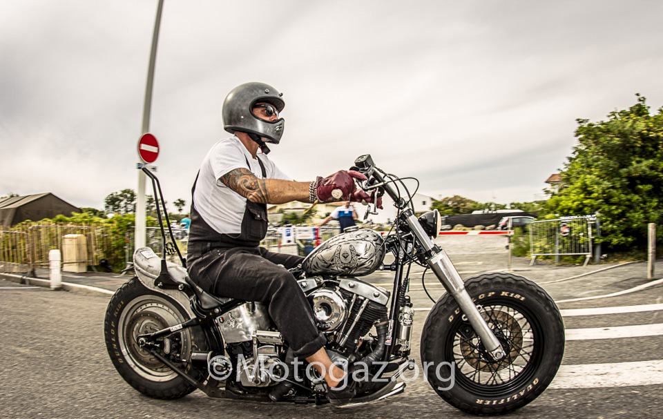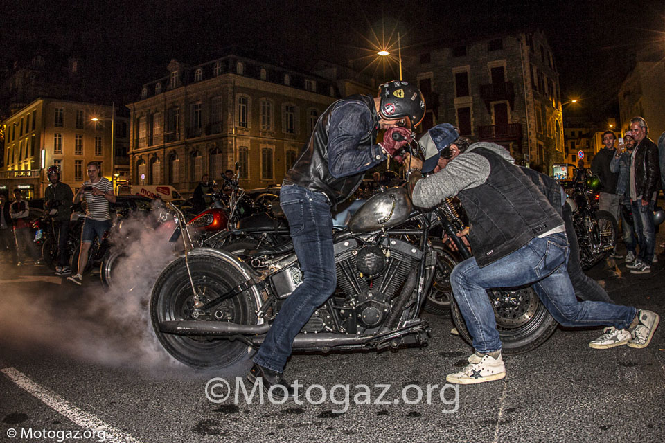 Al llegar a Biarritz no estábamos con la sensación de ir de viaje a un sitio, sino que se trataba de un dia mas dentro del viaje. Llegamos descargamos toda la moto, que si habéis leído el post del viaje ya sabéis como iba de cargada, y nos duchamos para ir fresquitos. Nada mas entrar en el sitio propio, la cite de l ocean ya nos encontramos con viejos conocidos de otros años. Yo no sé hablar inglés, entonces las conversaciones no son muy extensas, pero vamos apañando, y ver a la gente de todos los años te hace sentir en familia y es un ambiente muy bonito. Por la noche acudimos como siempre a la Place Du Port Vieux. Un ambientazo, pero al final la cosa se desmadro, a ver…nos lo pasamos en grande, pero claro vino la policía, puso un par de multas y tal, pero el ambiente no decae en absoluto, incluso algunos se animaron mas. Y el resto de días así, intercambiando experiencias con otra gente que venía de viaje de diferentes lugares en sus motos, que para mi es lo bonito. Hablamos con gente que se pego 2 mil Km y cifras por el estilo en motos muy muy incómodas, la nuestra dentro de lo que cabe es bastante llevadera.