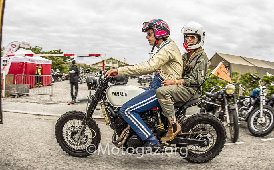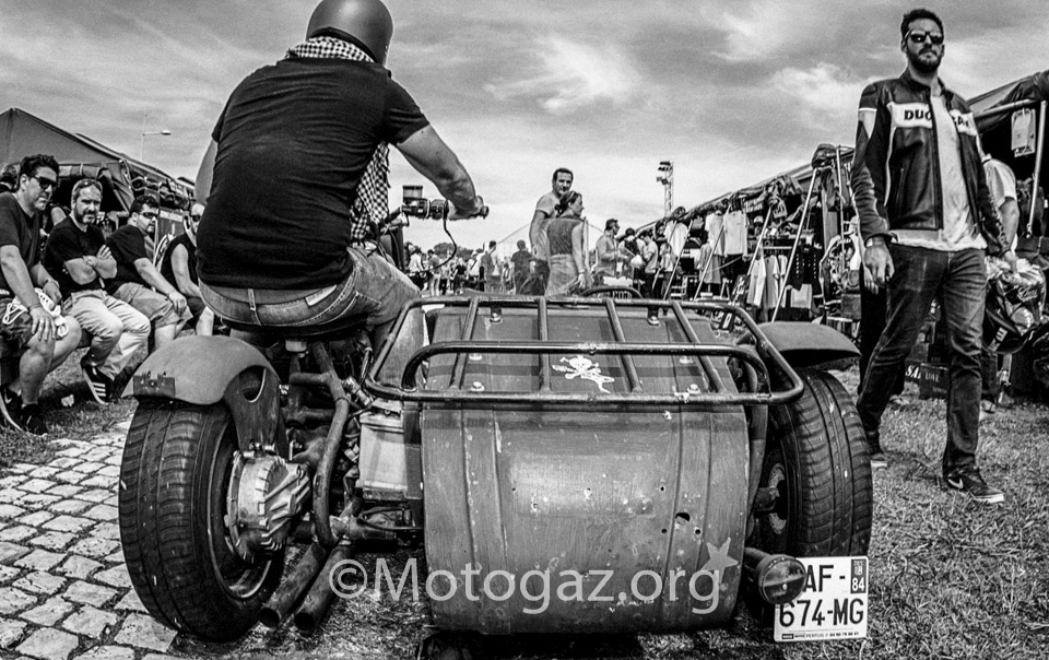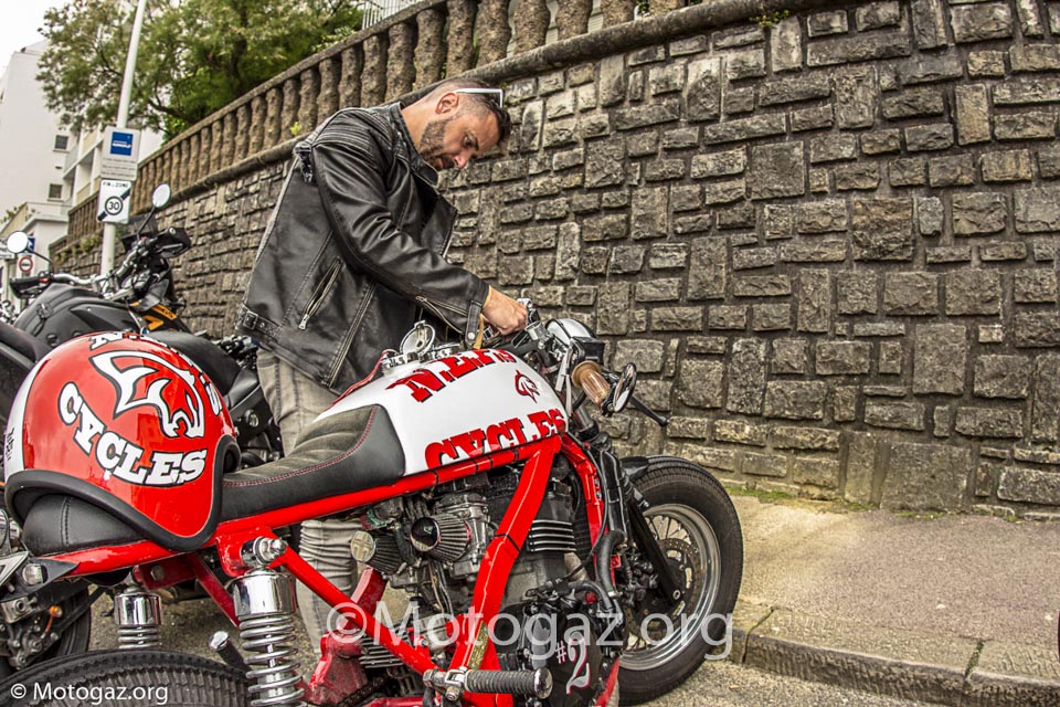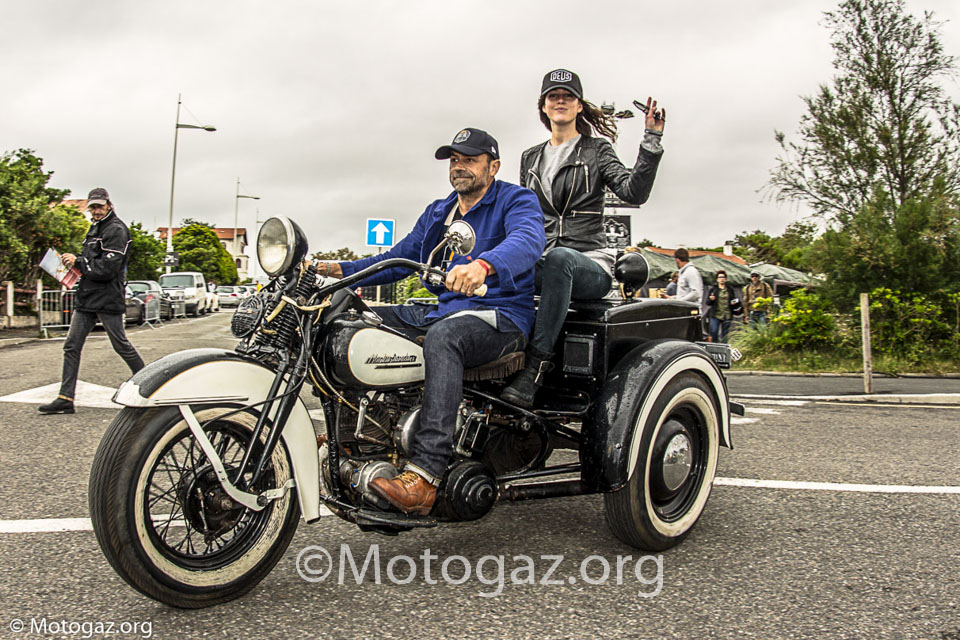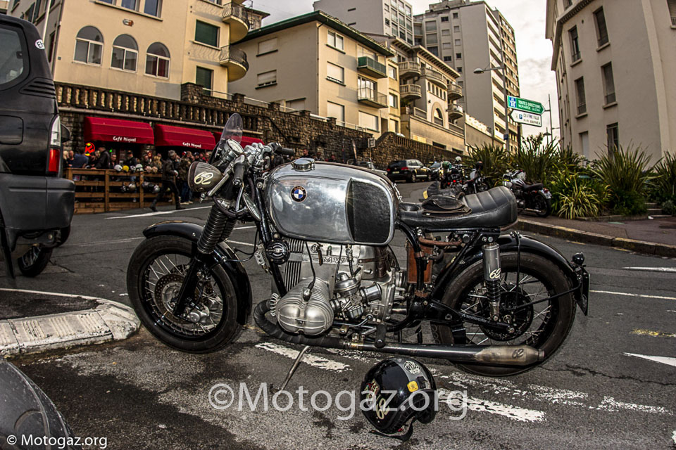 Al llegar a Biarritz no estábamos con la sensación de ir de viaje a un sitio, sino que se trataba de un dia mas dentro del viaje. Llegamos descargamos toda la moto, que si habéis leído el post del viaje ya sabéis como iba de cargada, y nos duchamos para ir fresquitos. Nada mas entrar en el sitio propio, la cite de l ocean ya nos encontramos con viejos conocidos de otros años. Yo no sé hablar inglés, entonces las conversaciones no son muy extensas, pero vamos apañando, y ver a la gente de todos los años te hace sentir en familia y es un ambiente muy bonito. Por la noche acudimos como siempre a la Place Du Port Vieux. Un ambientazo, pero al final la cosa se desmadro, a ver…nos lo pasamos en grande, pero claro vino la policía, puso un par de multas y tal, pero el ambiente no decae en absoluto, incluso algunos se animaron mas. Y el resto de días así, intercambiando experiencias con otra gente que venía de viaje de diferentes lugares en sus motos, que para mi es lo bonito. Hablamos con gente que se pego 2 mil Km y cifras por el estilo en motos muy muy incómodas, la nuestra dentro de lo que cabe es bastante llevadera.
